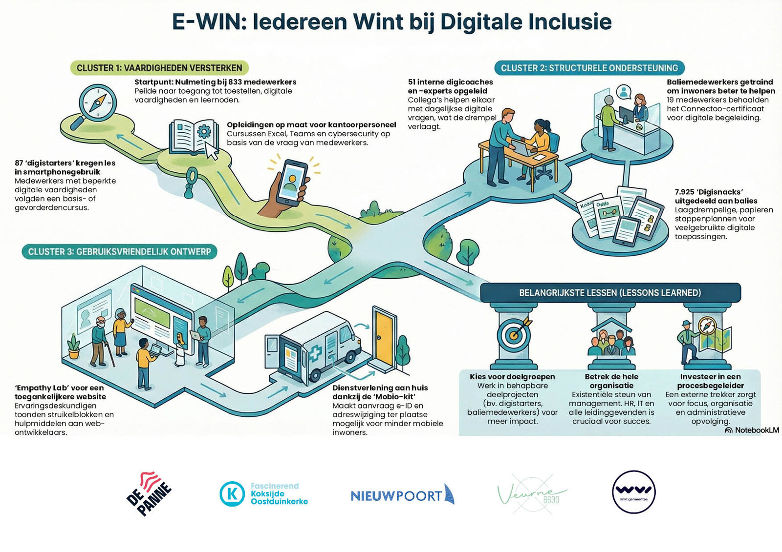- De resultaten leidden tot nieuwe opleidingsreeksen (kantoorsoftware, digistarters, digicoaches).