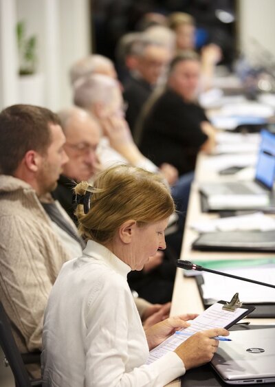 Daarover moeten de raadsleden vanavond stemmen. De stemmingen gebeuren op papier, waarbij de bestuursploeg haar kandidaten voorstelt en de oppositie het recht heeft om tegenkandidaten voor te dragen. Vlaams Belang put dat recht consequent uit. De algemeen directeur leidt de stemmingen in goede banen, de ophaling van de stembriefjes komt telkens toe aan het jongste raadslid van de meerderheid. De stemrondes leveren weinig verrassingen op. ‘Zestien stemmen voor, negen stemmen tegen [waarvan acht voor eenzelfde tegenkandidaat], vier onthoudingen’ is het resultaat dat we voor zeker vijf van de zeven agendapunten in kwestie optekenen.