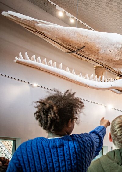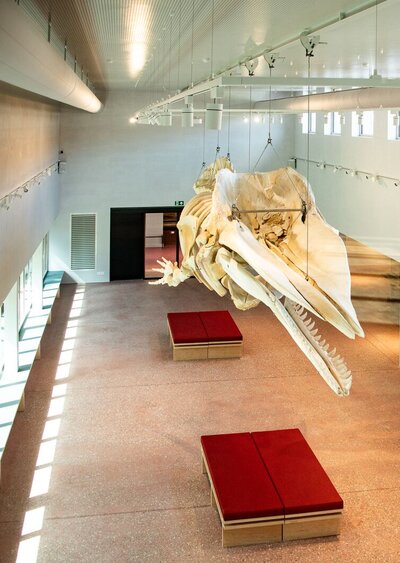 Dé blikvanger is potvis Valentijn, een 13 meter lang skelet dat een nieuwe thuis kreeg in een speciaal ontworpen vleugel van het museum. Valentijn spoelde in 1989 aan op het strand van Oostduinkerke en trok toen al tienduizenden kijklustigen. Nu hangt zijn geraamte als getuige van het maritieme verleden van Vlaanderen, samen met objecten die de link tussen mens en zee benadrukken, in een eigen zaal. Het ruime onthaal is de draaischijf van het volledige muse - um: vanaf hier begin je aan de vernieuwde museumroute in de potviszaal, bezichtig je de tijdelijke expo, bezoek je het vissers - huisje of snuister je rond in de uitgebreide museumshop.