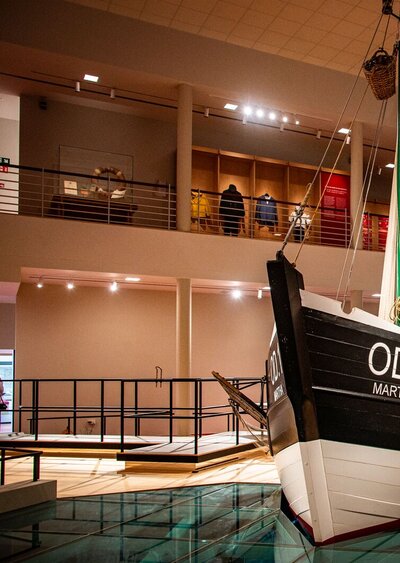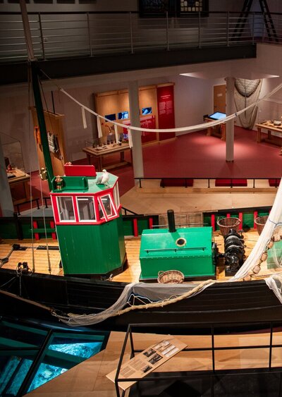 De nieuwe museumopstelling vertelt het verhaal van de visserij in al haar facetten: van lokale helden zoals de IJslandvaarders en de strandvissers, tot de visserijfamilies en hun leven op zee en aan de wal. Ook de vertrouwde vaste waarden werden opgefrist en zijn weer in vol ornaat te bewonderen. Zo is een houten kustvissersvaartuig de centrale spil in een indrukwekkende open zaal met drie verdiepingen. Het bepaalt er de verhaallijnen ‘leven en werken op zee’ en ‘leven en werken aan de wal’. In twee grote aquaria zie je Noordzeedieren zwemmen. Op de muren rondom voeren beeldprojecties je mee naar de Noordzee en haar opmerkelijke bewoners. Het museum heeft speciaal voor gezinnen en schoolgroepen interactieve activiteiten ontwikkeld, zoals de familiezoektocht ‘Alle hens aan dek’ en verschillende educatieve pakketten voor scholen. In de ‘kinderkajuit’ ontdekken kinderen het vissersleven via een inleefspel.