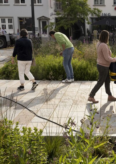 Een combinatie van klimaatbestendige vaste planten, siergrassen, bloembollen zorgt voor een aantrekkelijk beeld. De meerstammige heesters en solitaire bomen creëren schaduw. Van januari tot laat in de herfst is er voldoende bloei en nectar beschikbaar voor vlinders, bijen en andere insecten. Zo dragen de groenzones bij aan de biodiversiteit.